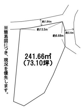 | 土地面積 | 公簿 241.66㎡ | 坪数 | 73.10坪 | 坪単価 | 1.37万円 |